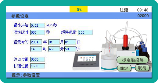 MAC-1智能卡爾費(fèi)休水分測(cè)定儀(容量法)采用帶觸摸屏的超大屏幕LCD液晶顯示器,具有軟件內(nèi)容豐富,操作內(nèi)容漢字提示,人機(jī)對(duì)話靈活方便,試驗(yàn)結(jié)果存儲(chǔ)和打印等功能。在2010年又和清華大學(xué)精密測(cè)試技術(shù)及儀器國(guó)家重點(diǎn)實(shí)驗(yàn)室合作,用超精密位移測(cè)量技術(shù)對(duì)其做了進(jìn)一步的改進(jìn),測(cè)量精度有了質(zhì)的飛躍,達(dá)到了世界水平。